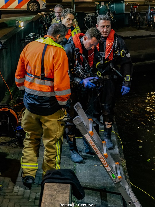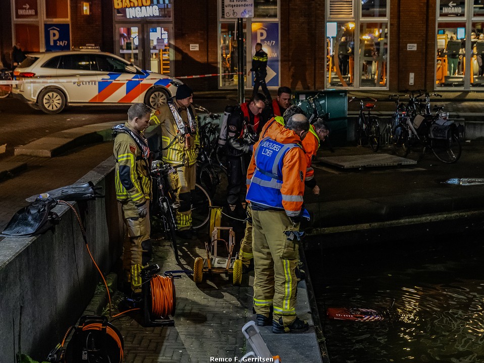 Brandweer, politie, ambulance waren snel op locatie en hebben gezocht met o.a. een sonar-drone in het water.
