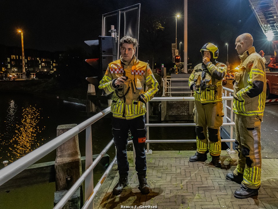 Kleding langs waterkant zorgt voor duikinzet brandweer, Pottersbrug (Gouda)