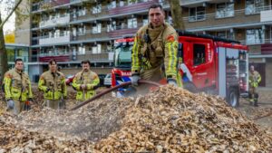 Brandweer blust broei in berg houtsnippers, Ridder van Catsweg (Gouda)Nieuw!