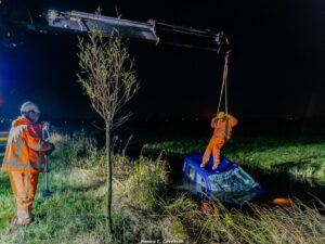 Vanavond rond kwart over 11 werden de hulpdiensten gealarmeerd voor een voertuig te water aan de Reeuwijkse Randweg te Reeuwijk.
